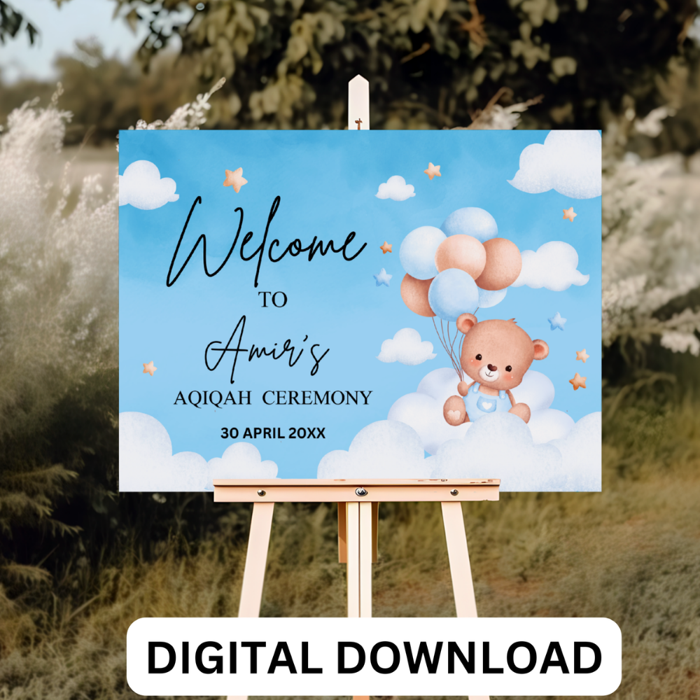 Make your aqeeqah ceremony unforgettable with elegant aqeeqah ceremony decorations that celebrate the joy of birth in Islam. Greet your loved ones in style with a warm aqiqah welcome sign or a beautifully designed aqiqah sign.
