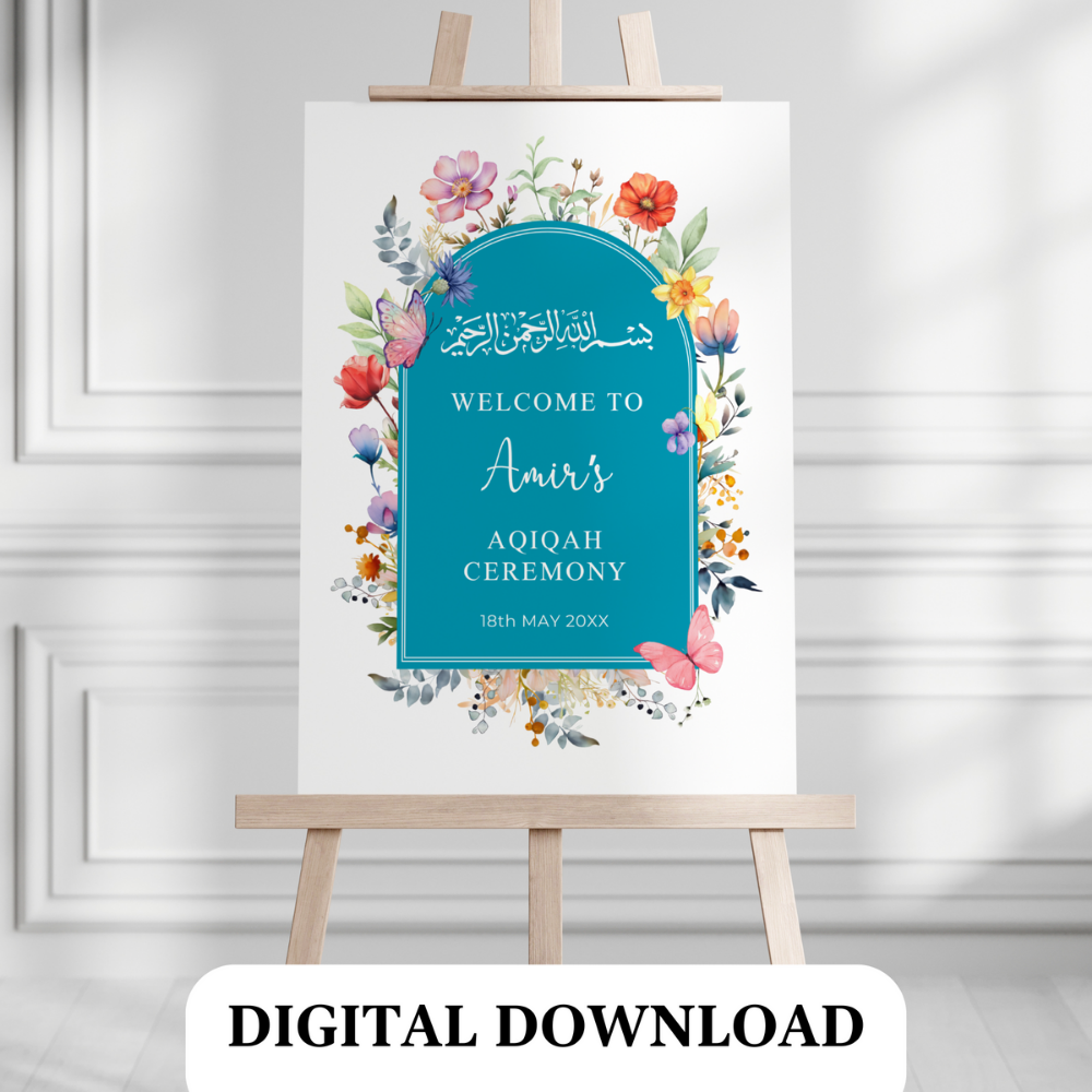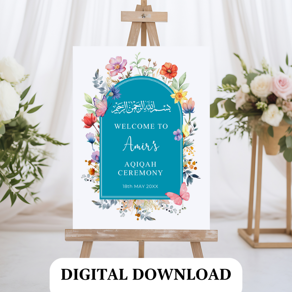 Make your aqeeqah ceremony unforgettable with elegant aqeeqah ceremony decorations that celebrate the joy of birth in Islam. Greet your loved ones in style with a warm aqiqah welcome sign or a beautifully designed aqiqah sign.