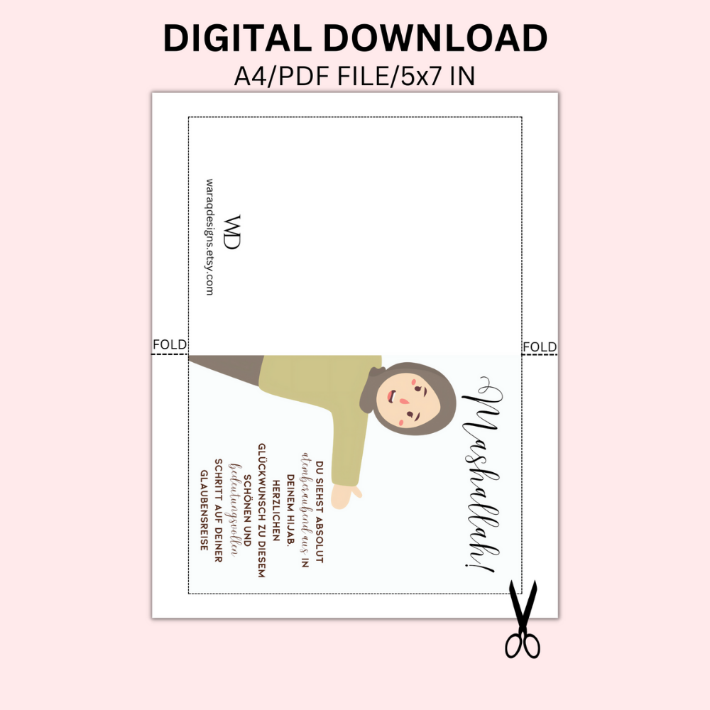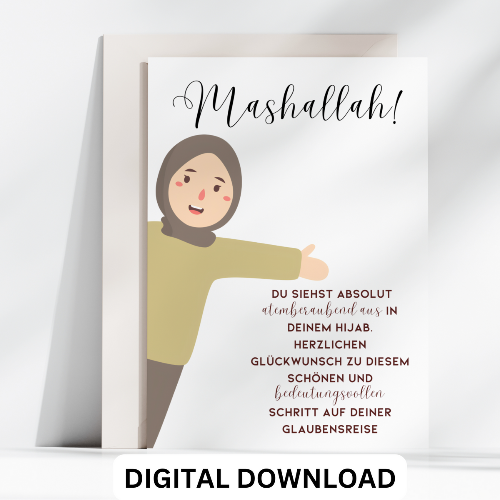 Celebrate a special moment with our heartfelt printable hijab card! “Mashallah, You look absolutely stunning in your hijab” is a beautiful way to show your support and congratulate someone on their faith journey. Share the love and admiration today.
