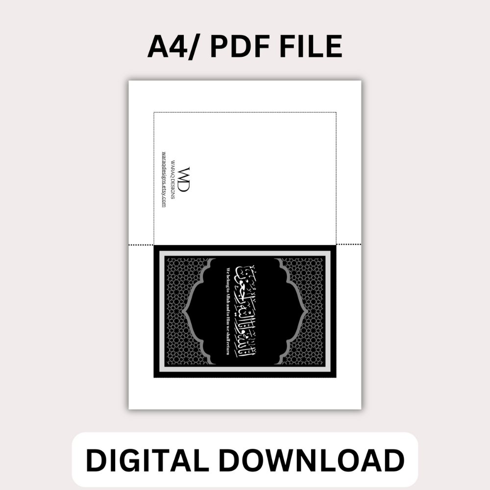 This Islamic sympathy card offers heartfelt condolences through the light of faith. Designed to bring solace in times of loss, it gently reminds loved ones of Allah’s mercy, qadr (divine will), and the promise of reunion in Jannah.
